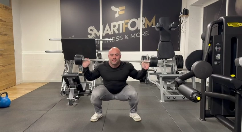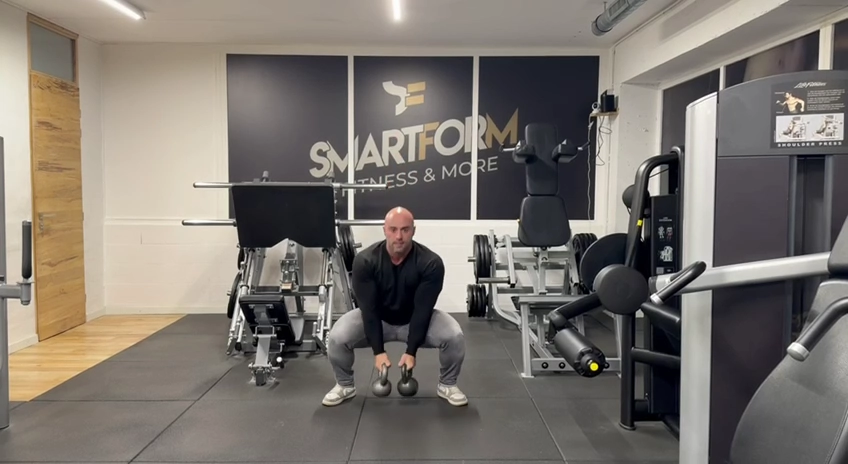 Kettlebell-Squats oder Squats mat der Laanghantel: Den Ënnerkierper gëtt trainéiert. Virun allem de viischten Uewerschenkel an den Hënner. Mat der Laanghantel gëtt méi den Hënner an och de Bizeps belaascht, mat der Kettlebell-Variant méi den Uewerschenkel.